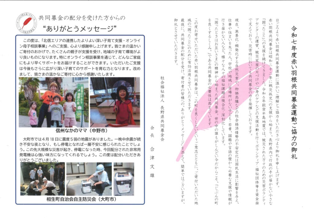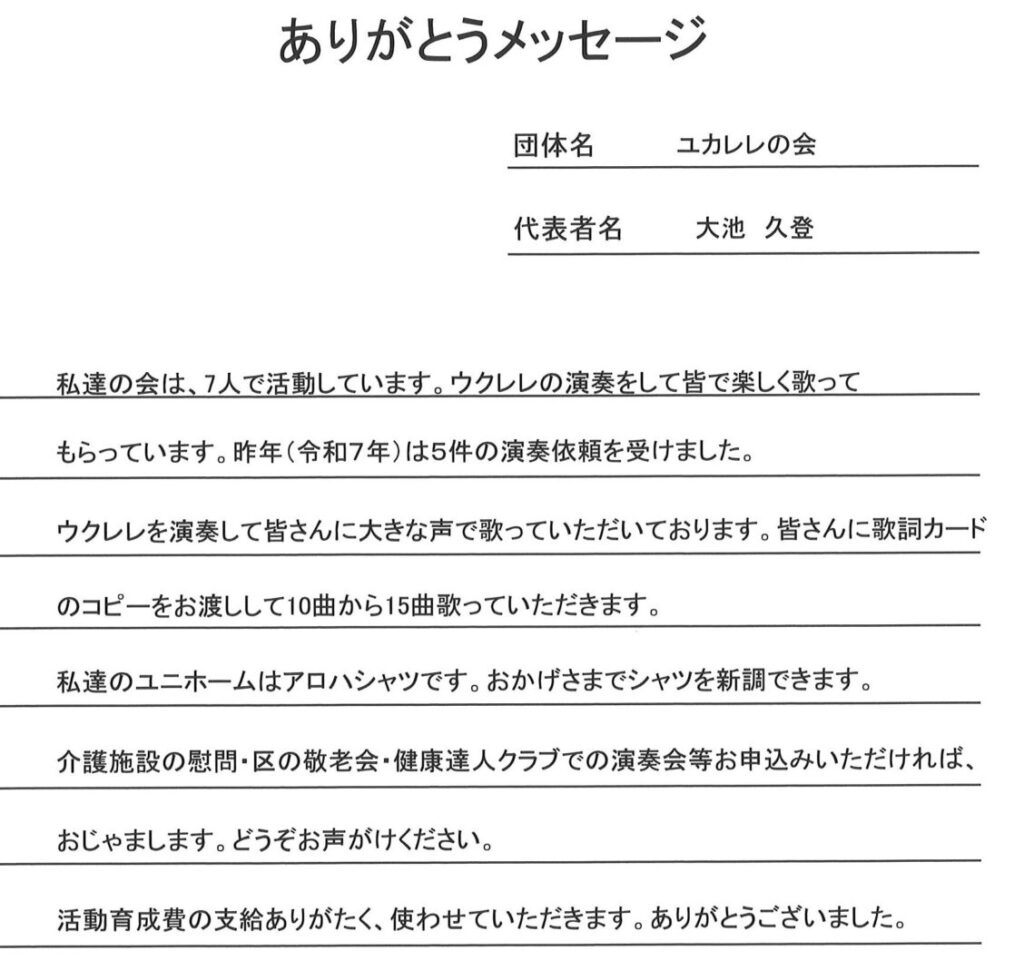 令和7年度事業対象「ボランティア・市民活動育成費」配分に対する「ありがとうメッセージ」