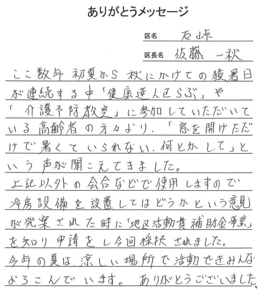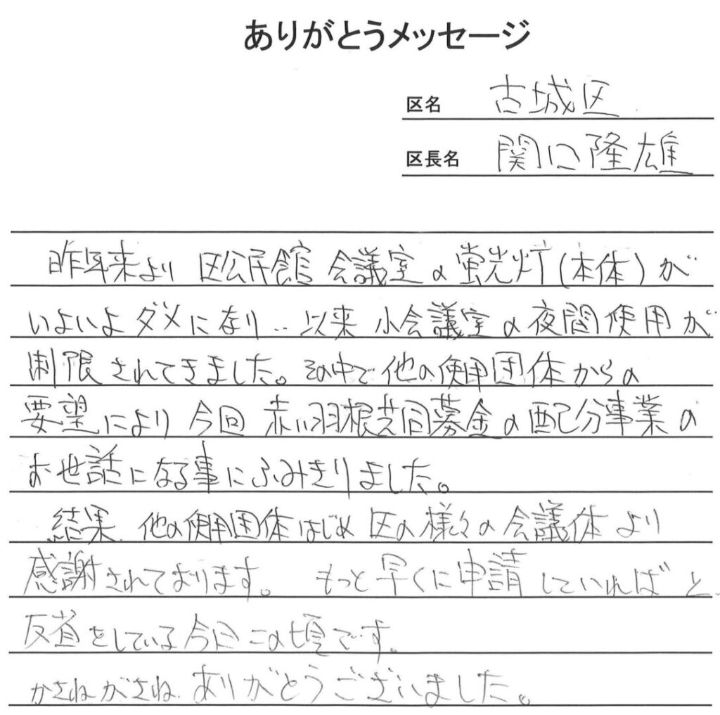 令和4年度「地区活動費補助金事業」配分に対する「ありがとうメッセージ」