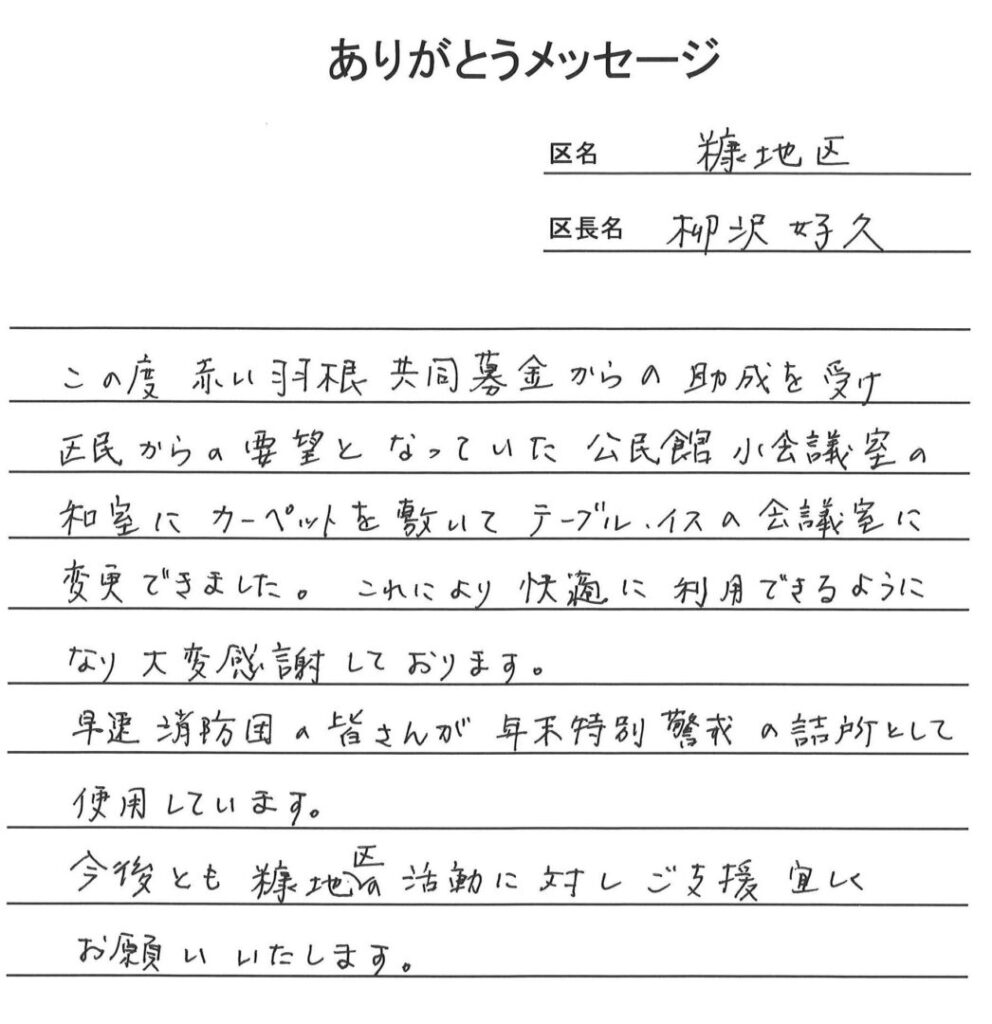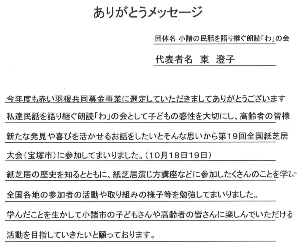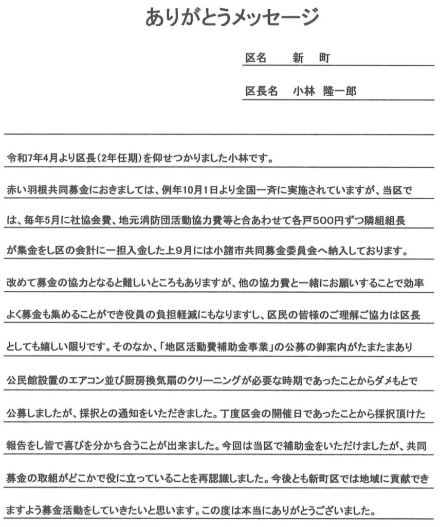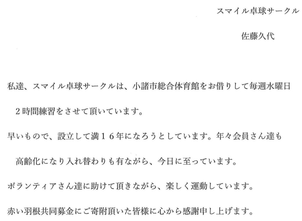 長野県共同募金会よりの礼状も掲載します。