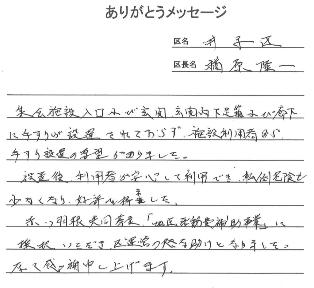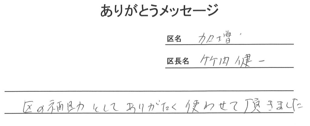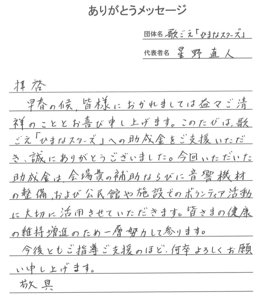 令和7年度「地区活動費補助金事業」配分に対する「ありがとうメッセージ」