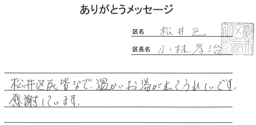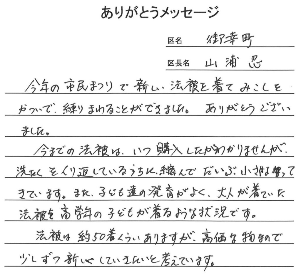 令和5年度「地区活動費補助金事業」配分に対する「ありがとうメッセージ」