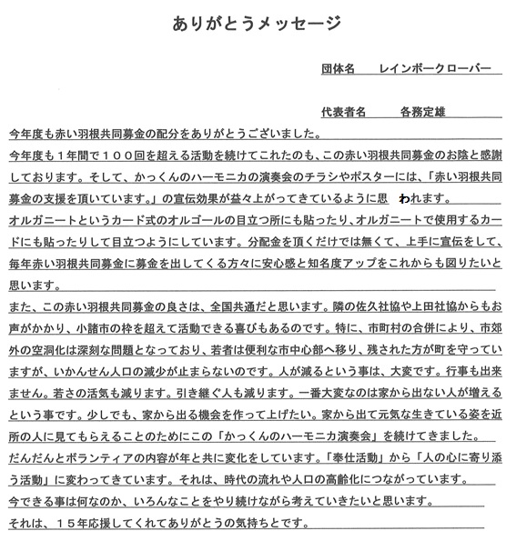 ボランティア・市民活動団体からの「ありがとうメッセージ」は(ここ)から。