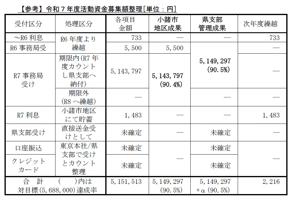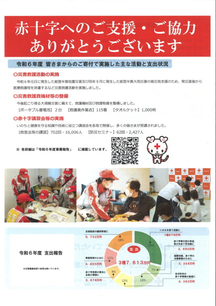 令和7年度の活動資金にご応募頂き、誠にありがとうございました。小諸市全体で5,143,797円を頂きました。詳細は下記です。また日赤長野県支部から御礼チラシが送られて来ましたら即時掲載します。それまでは令和6年度版を掲載しておきます。