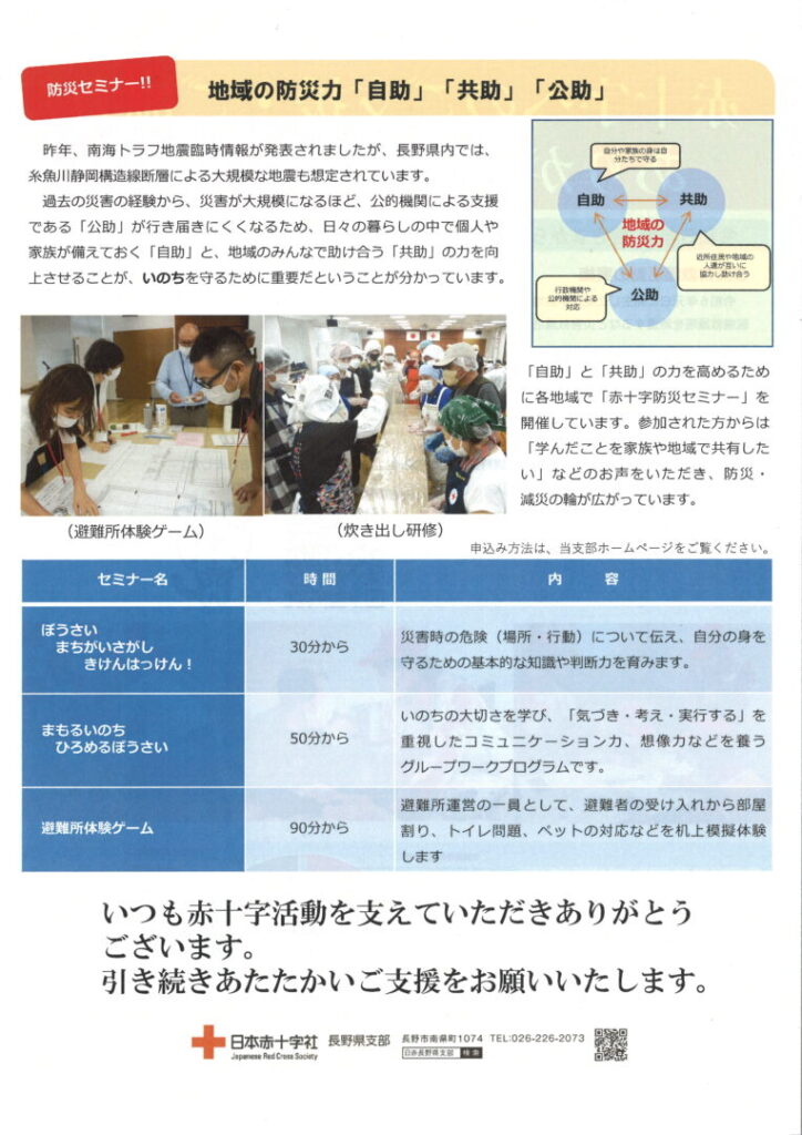 ・令和7年度日赤長野県支部主催の各種講習会の日程が確定しました(ここ)。